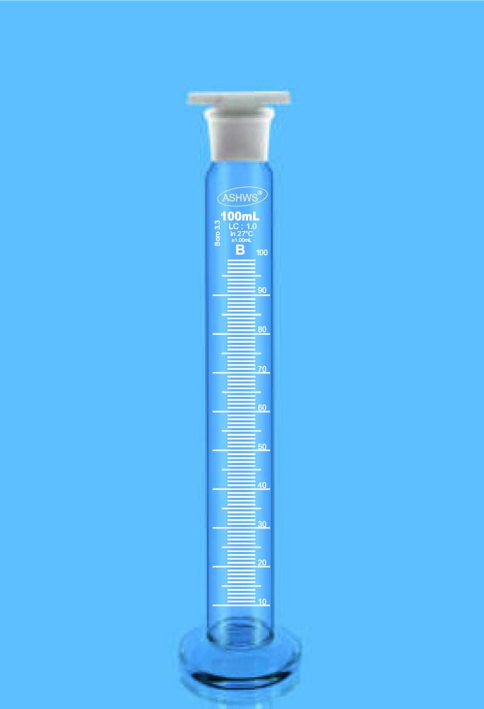 Cat. No. | Capacity (mL) | Graduation (mL) | Tolerance (±mL) | Stopper Size | Pack of |